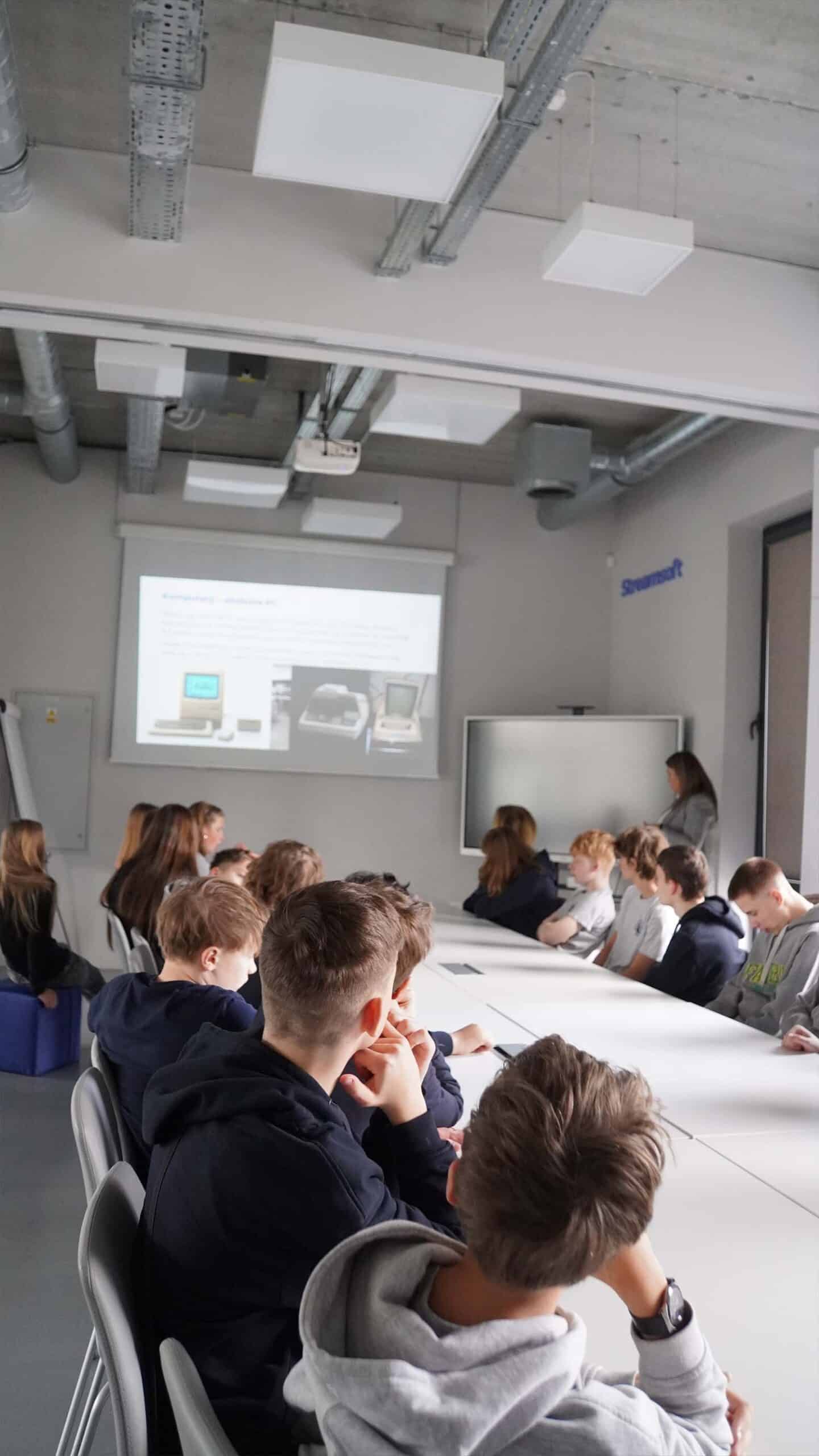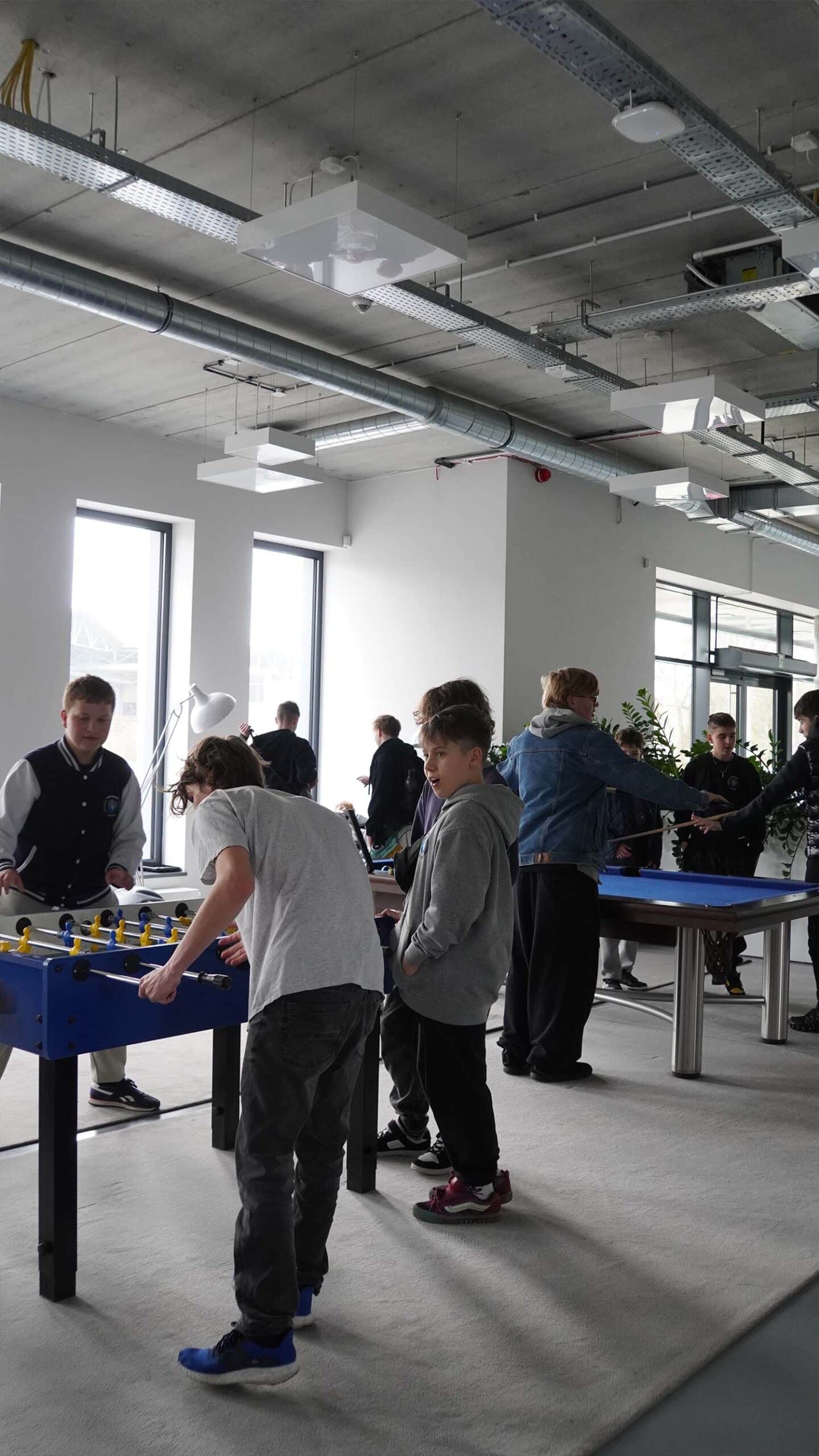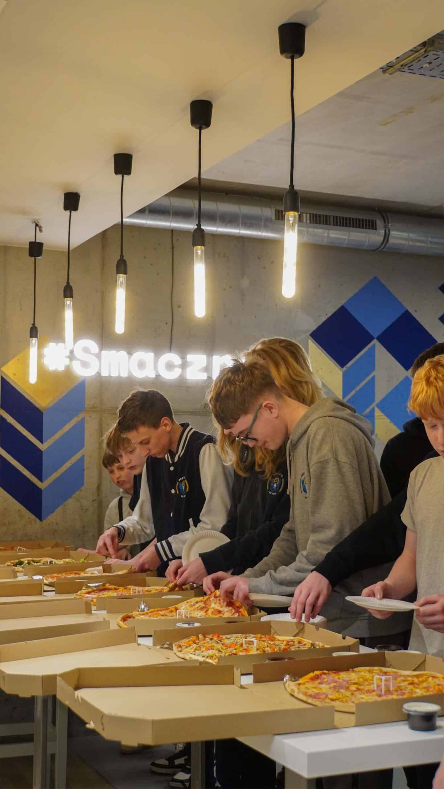 Podczas wizyty mogli poznać nas bliżej: zobaczyli krótką prezentację o firmie, przyjrzeli się z bardzo bliska pracy m.in. programistów i serwisantów Streamsoft, którzy opowiedzieli jak wygląda realizacja projektów i codzienna praca w firmie IT. Później był też czas na chwilę rozrywki w naszym Playroomie i Coffee Break. Nie zabrakło pysznej pizzy w porze lunchu i wspólnego zdjęcia na zakończenie wizyty.