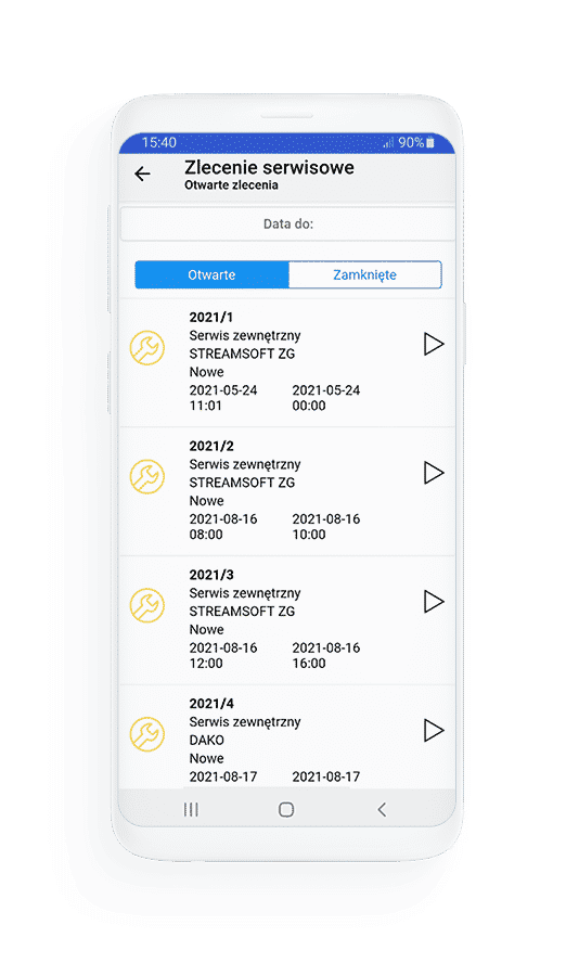 Obsługa usług serwisowych w terenie z aplikacją Serwis Mobile jest wygodna i intuicyjna. Masz dostęp na smartfonie do wszystkich zleceń założonych w systemie Streamsoft Prestiż, a także informacji oraz akcji istotnych dla ich realizacji.