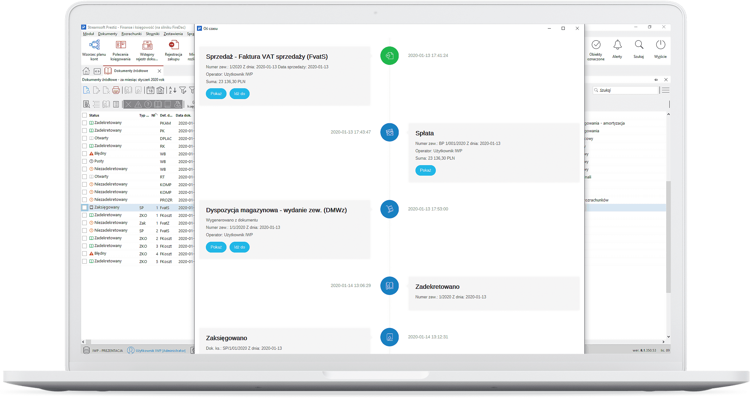 Tworzone dla wszystkich dokumentów źródłowych – z różnych obszarów systemu – oraz dla automatów księgowych. Skrócenie procesu księgowania. Wiarygodność dzięki rejestracji danych do zapisania dokumentu na konta podczas różnych etapów jego obsługi.